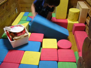 大きなフワフワブロックが敷き詰められていました。何をしているのでしょう?