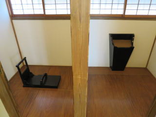 金沢別邸には「来客用」「主人用」「管理人用」の3箇所の便所があったそうです。この客用便所の木製便器は本漆仕上げのです!